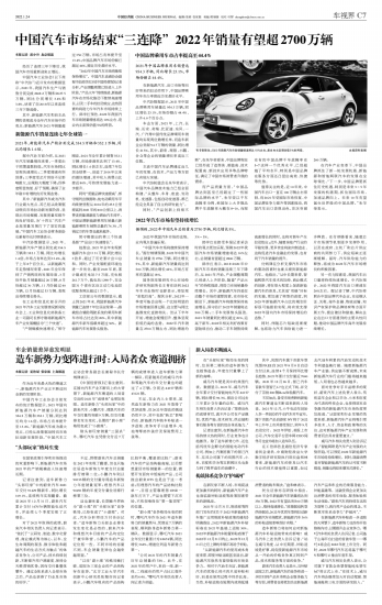 中国汽车市场结束“三连降”2022年销量有望超2700万辆