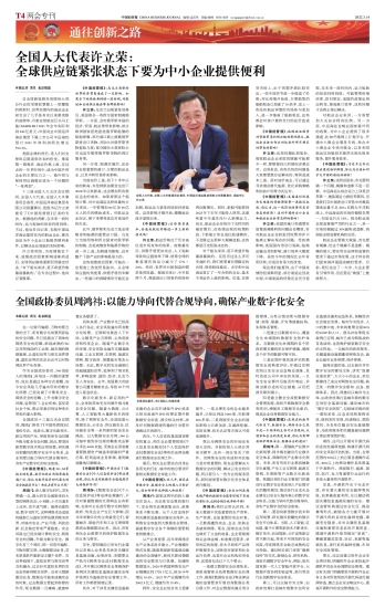全国人大代表许立荣:全球供应链紧张状态下要为中小企业提供便利