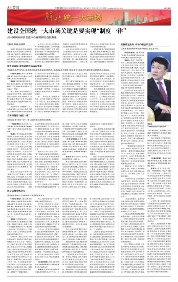 建设全国统一大市场关键是要实现“制度一律”