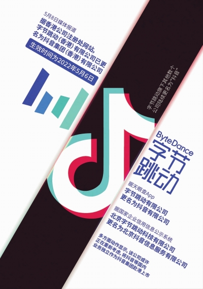 5月6日,字节跳动(香港)有限公司更名为抖音集团(香港)有限公司。
