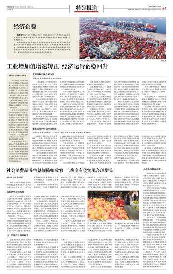 工业增加值增速转正 经济运行企稳回升