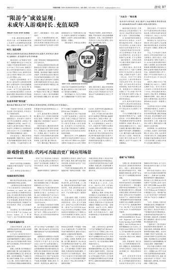 “限游令”成效显现:未成年人游戏时长、充值双降