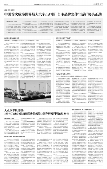 中国首次成为世界最大汽车出口国 自主品牌集体“出海”势头正劲