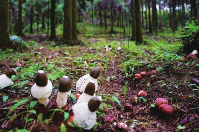 文成县百丈 镇石庄村550多亩林场里,工人们正忙着采摘、筛选、运送红托竹荪,一个个脸上洋溢着灿烂、幸福的笑容。竹荪对土地土壤、地理环境有严格要求,要高海拔雨水阳光充足、温度保持在15—28摄氏度之间、最高不能超过30摄氏度的地方,得天独厚的地理环境孕育了独特的竹荪经济。