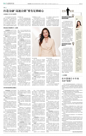 可以在中国市场当好“陪练”,来自当前市场转型期服务需求侧机构的意愿,也来自服务供给侧机构的禀赋。在交流中,朱亚明多次强调美国运通“穿越经济周期”的百年业务经验以及对中国市场的长期信心。在近期举行的上海外滩大会上,这家公司的高层也在继续传达这种进一步拥抱中国市场的意愿,美国运通全球网络服务总裁MohammedBadi(穆罕默德·巴迪)就公开表示:“我们期待从上海出发,在中国进行更多的技术合作和业务投资,为这个重要的市场发挥更大作用。”