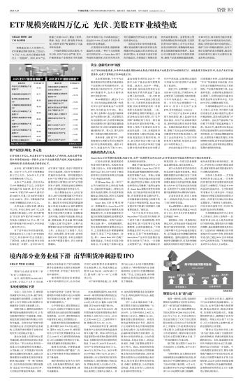 ETF规模突破四万亿元 光伏、美股ETF业绩垫底