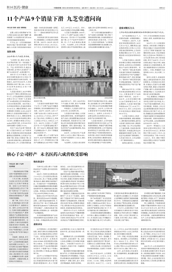 11个产品9个销量下滑 九芝堂遭问询