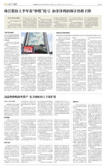 珠江股份上半年靠“炒股”扭亏 扣非净利润预计仍将下降