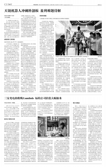 在LED芯片领域,三安光电是中国最大的LED芯片制造商,覆盖LED外延片和芯片制造,Lumileds则主要是LED的封装以及模组和照明系统的开发,专注于汽车车灯、相机闪光灯和特种照明等领域的中高端LED产品的生产和销售。