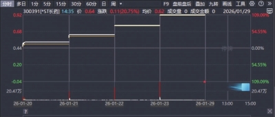 然而,对于*ST立方的退市风险,市场似乎仍然没有充分警醒。*ST立方股价在1月26日(星期一)收跌12.21%后,1月27日、28日,分别收涨20%、16.67%。