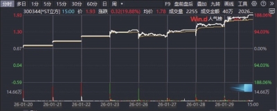 2026年1月28日,*ST立方(立方数科,300344.SZ)披露《股票交易异常波动暨风险提示公告》称,目前,公司股票价格已严重脱离公司基本面情况,存在市场情绪过热、非理性炒作风险,未来可能存在股价快速下跌的风险。