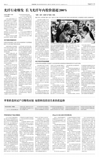 光纤行业爆发 长飞光纤年内股价涨超200%