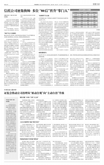 信托公司密集换帅 多位“80后”晋升“掌门人”